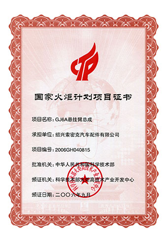 公司已先后通過IATF16949質量管理體系認證、ISO/14001環境管理體系認證和OHSAS18001職業健康安全管理體系認證。是“國家高新技術企業”“行業龍頭企業”和“全國百家優秀汽車零部件供應商”。